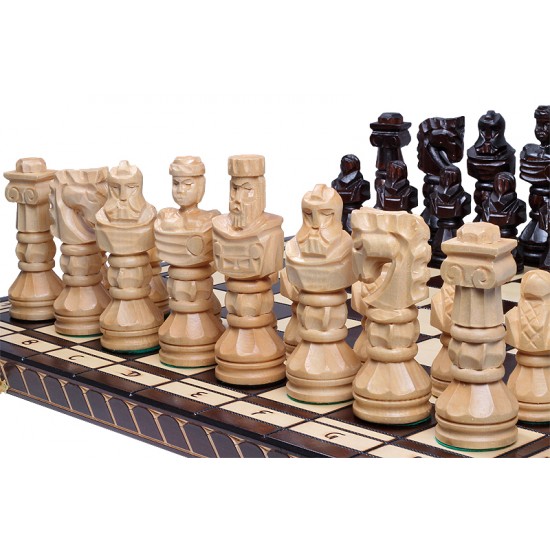 На перший погляд у цій моделі впадає у вічі силует фігури короля та її висота-150мм. Зовнішній вигляд фігур та великий розмір дошки створять відчуття справжньої гладіаторської битви.