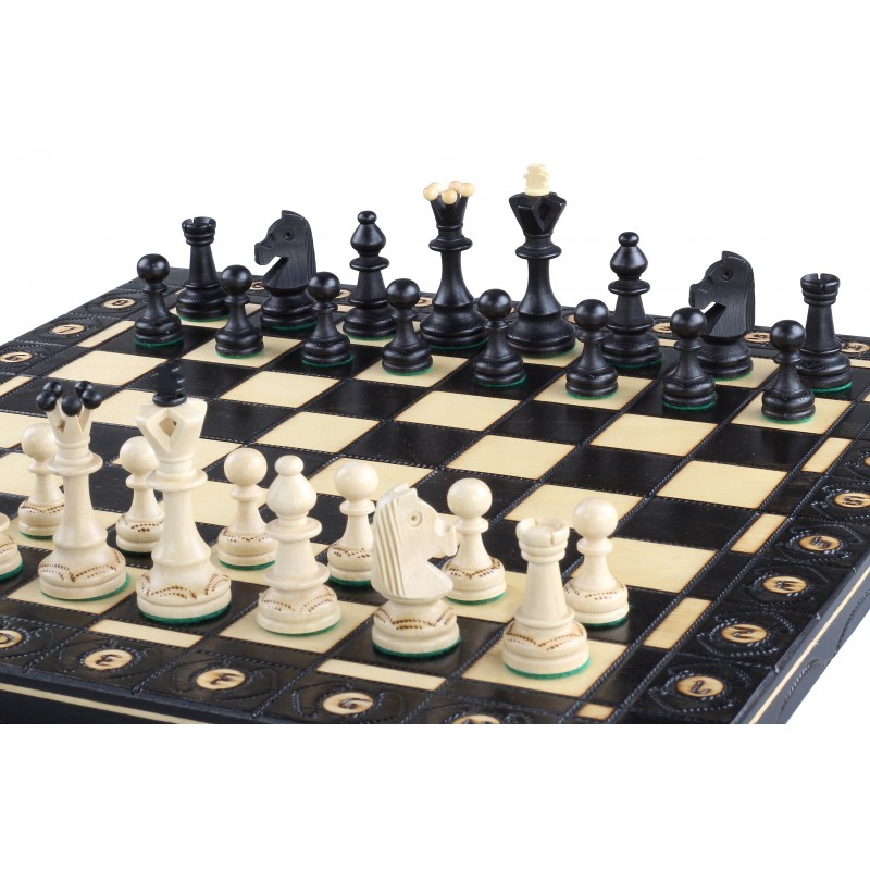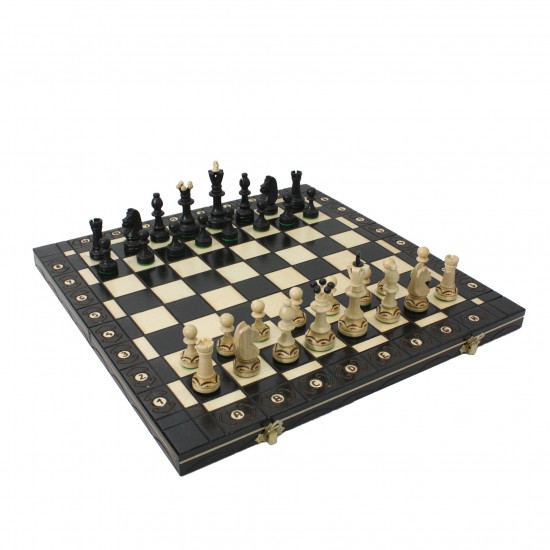 Шаховий набір Сенатор, від польського виробника Мадон, відрізняється оригінальним дизайном дошки і фігур і стильним чорним кольором. Фігури виконані з високоякісної деревини (граб і платан) з елементами випалювання, ретельно відшліфовані і покриті багатошаровим лаком. Дошка зроблена з елементами ручної різьби і випалювання і має відповідну розмітку. Дошка легко складається і перетворюється в зручний контейнер для зберігання фігур, що забезпечує їх цілісність при транспортуванні. Підставу фігур покрито повстю, що запобігає пошкодженню унікальної ігровий дошки під час запеклого змагання.