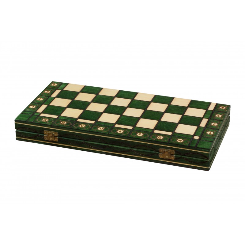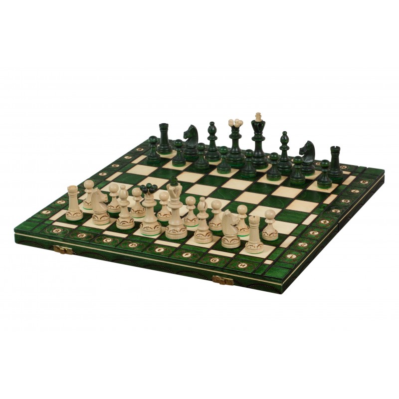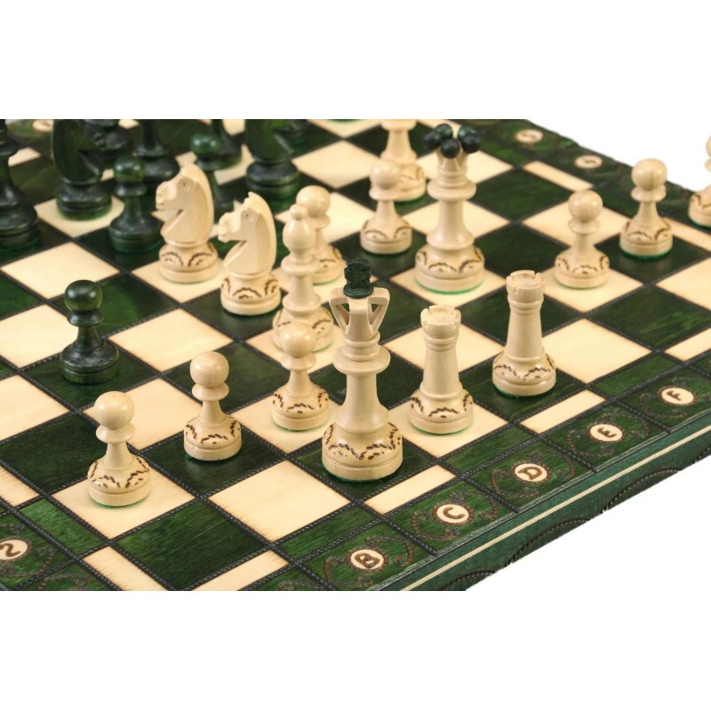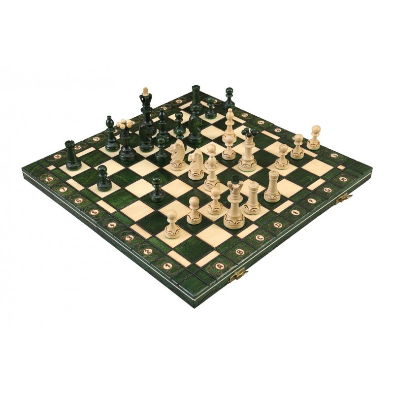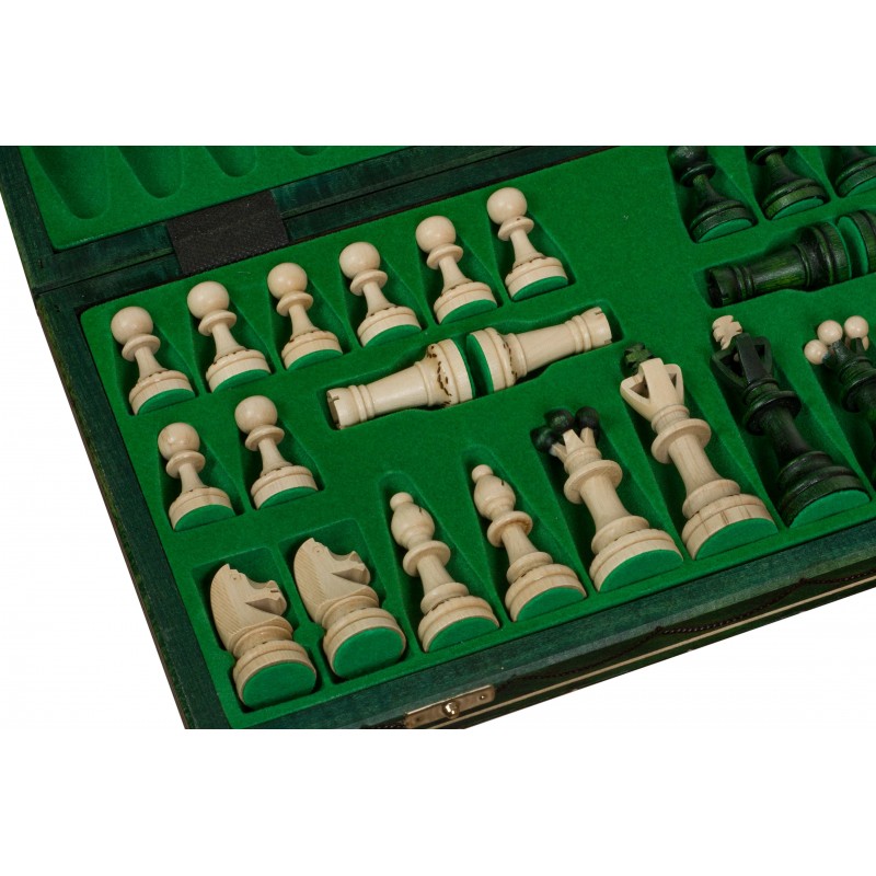 Шаховий набір Сенатор, від польського виробника Мадон, відрізняється оригінальним дизайном дошки і фігур і вишуканим зеленим кольором. Фігури виконані з високоякісної деревини (граб і платан) з елементами випалювання, ретельно відшліфовані і покриті багатошаровим лаком. Дошка зроблена з елементами ручної різьби і випалювання і має відповідну розмітку. Дошка легко складається і перетворюється в зручний контейнер для зберігання фігур, що забезпечує їх цілісність при транспортуванні. Підставу фігур покрито повстю, що запобігає пошкодженню унікальної ігровий дошки під час запеклого змагання.