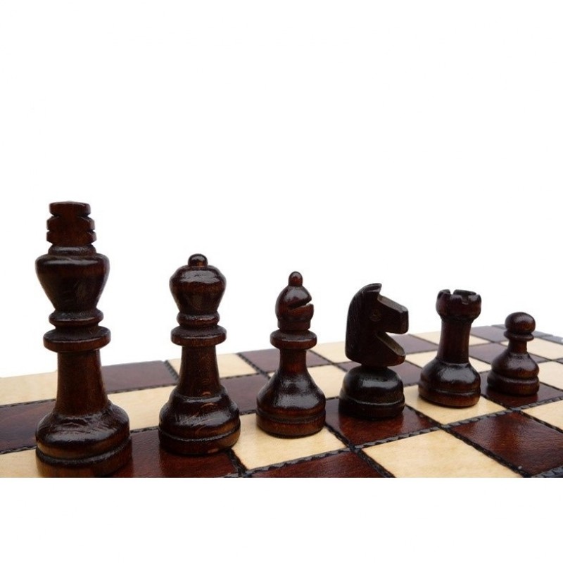 Шаховий набір "Шкільні", від польського виробника Мадон, зроблений з натурального дерева. Дошка виготовлена з високоякісної деревини (бук і карельська береза), а фігури - (граб і бук). Дошка виконана з елементами різьби та випалювання, має гарне поєднання темно- коричневих і світлих полів. Всередині дошки є оксамитова вкладка для акуратного складання фігур, що забезпечує їх дбайливе зберігання і зручність при перенесенні. Закривається дошка за допомогою зручного замку. Підставу фігур покрито зеленим фетром, що запобігає дряпанню дошки і сприяє гарному ковзанню при грі. Дошка і фігури ретельно відшліфовані і покриті багатошаровим лаком.