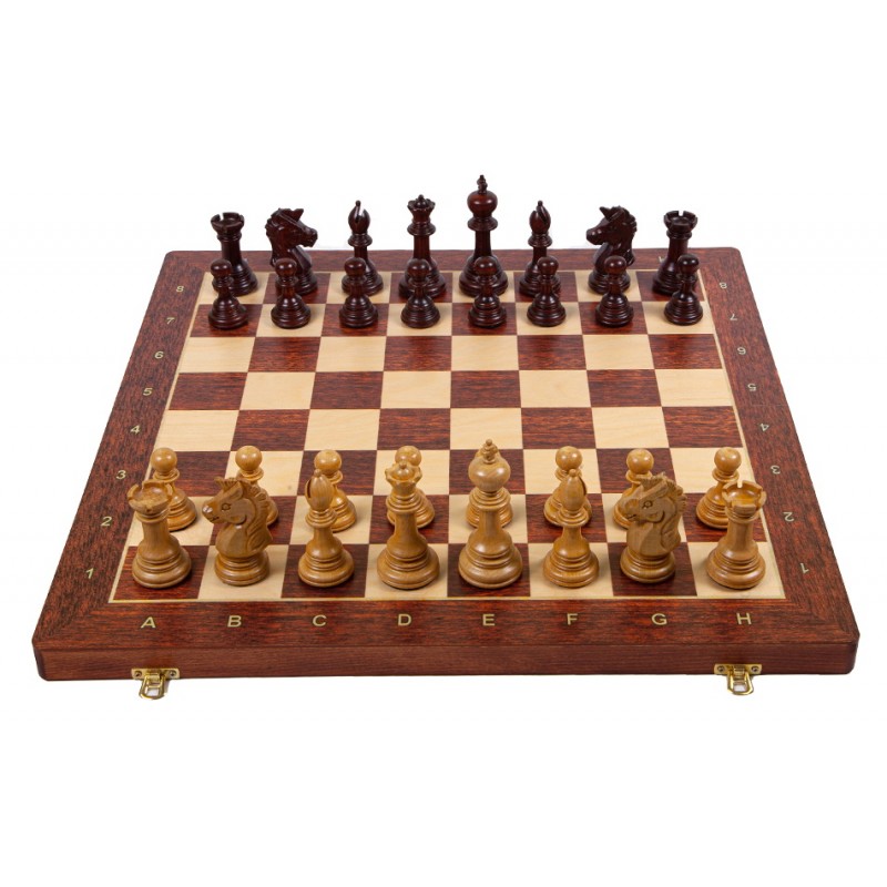 Фігури виготовлені з клена, майстерно вирізані вручну, відшліфовані та покриті багатошаровим лаком. На особливу увагу заслуговує фігура коня, яка нагадує коня бога Одіна, що робить його особливо цікавим для любителів скандинавської міфології, майстерне різьблення робить фігуру унікальною і неповторною. Основу фігур вкрито повстю, що дозволяє їм плавно рухатися дошкою. Фігури з додатковим обтяжувачем.