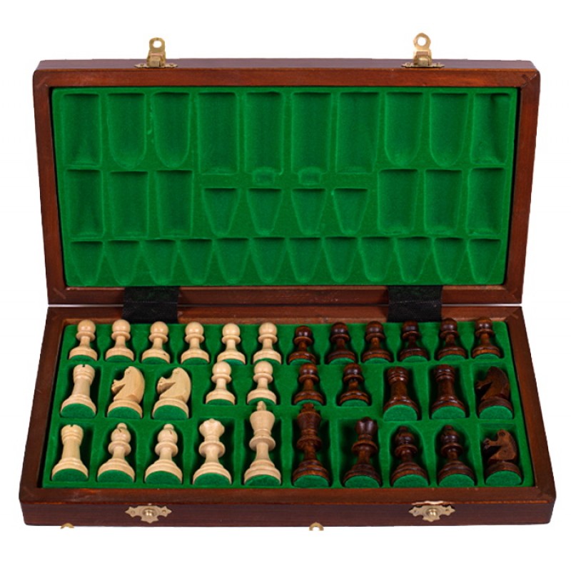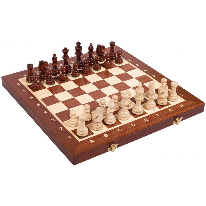 Шаховий набір Турнірні №3, представлені польським виробником Madon, стануть ідеальним ігровим комплектом для дому або для проведення турнірних змагань. Оригінальний дизайн і компактні розміри певним чином втілюють класичні традиції, що формувалися з давніх-давен. Дошка з габаритами 350мм х350 мм, виготовлена з натурального дерева, за технікою інтарсія, що забезпечує міцність та тривалий термін служби. Дошка легко складається і перетворюється на зручний контейнер для зберігання фігур. По краях дошки нанесено нумерацію, нагоді при записі важливих партій. Дизайн шахових фігур Стаунтон, який був запропонований в середині XIX століття, вважається стандартом і понині, і підкреслює особливу витонченість комплекту. Фігури виготовлені з дерева-граб.