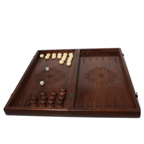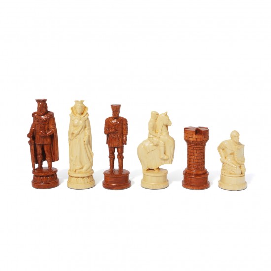 Дошка та фігури виготовлені з добірного дерева горіх, що вирізняється благородною текстурою та довговічністю і вкриті багатошаровим лаком, який надає виробу глибокого блиску та забезпечує захист на довгі роки. Кожна фігура майстерно вирізана вручну у вигляді французьких лицарів епохи Середньовіччя. Від шоломів до обладунків — кожна деталь відтворена з неймовірною точністю. Особливо вражає фігура коня — це справжній лицар на бойовому коні, що надає грі ще більшої атмосферності та характеру.
