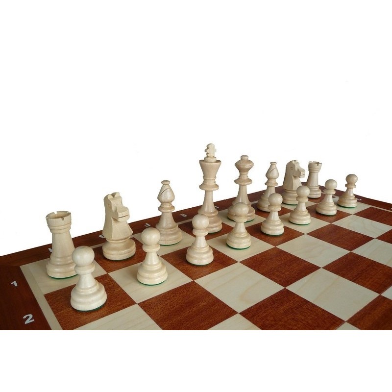 Набір дерев'яних фігур великого розміру та відповідної ігрової дошки. Стриманий класичний дизайн фігур приваблює своєю акуратністю. Якість і суворе дотримання традицій цього польського виробника шахової атрибутики завоювало світову славу. Дошка зроблена за технологією інтарсія з високоякісних порід дерева. Фігури йдуть з обтяжувачем, що робить їх стійкими на дошці. Основа фігур покрита зеленою повстю, що сприяє кращому ковзанню по дошці і не дряпає її. Внутрішня поверхня дошки є «персональними» осередками для фігур, вкриті м'яким зеленим фетром.