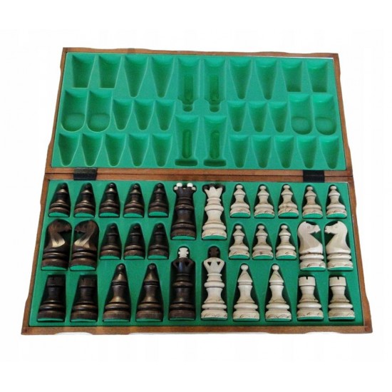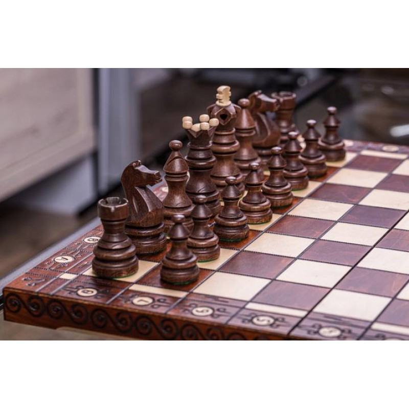 Оригінальний шаховий набір Імператор – ручна робота польських майстрів, відомого бренду преміум-сегменту Wegiel. Шахова дошка виготовлена з бука та берези, фігури-з явора та граба. Дошка майстерно вирізана з елементами випалювання.