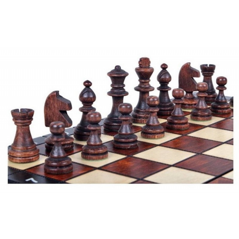 Набір виготовлений з високоякісного дерева, що надає йому солідного вигляду та приємної текстури, а ретельно продумані деталі фігур додають грі особливого шарму. Розмір 27 х 27 см робить його компактним для зберігання, але достатньо великим для комфортної гри, як для початківців, так і для досвідчених гравців.