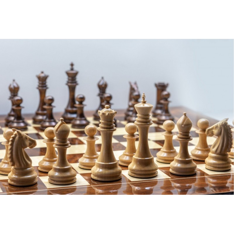Эксклюзивные шахматные фигуры Александр отличаются элегантным и изысканным стилем. Фигуры искусно вырезаны, отшлифованы, отполированы и вскрыты многослойным лаком. Привлекают особым вниманием к деталям. Эти уникальные фигуры станут украшением вашей коллекции. Фигуры изготовлены из клена и идут с дополнительным утяжелителем.