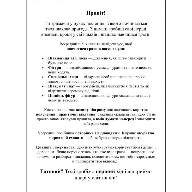 Шахматное пособие для начинающих – идеальный старт в мире шахмат для детей и взрослых. Книга поможет научиться играть в шахматы с нуля и сделать первые уверенные шаги без перегрузки теорией.