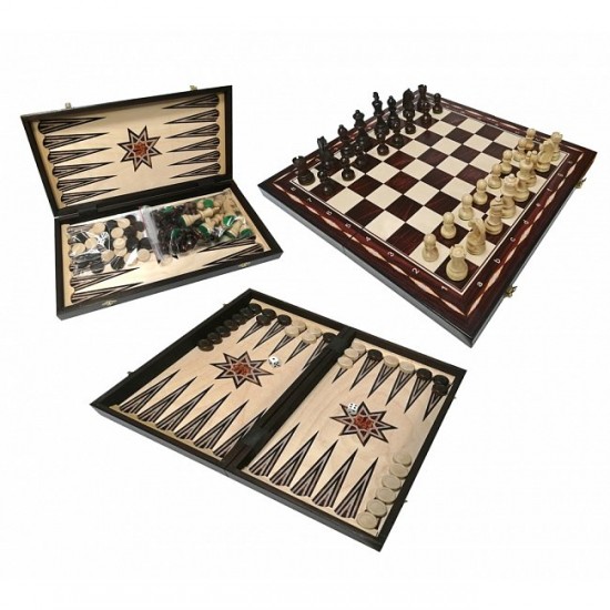 Набор шахматы+шашки+нарды Exclusive, 47см х 47см (Мадон 144A)