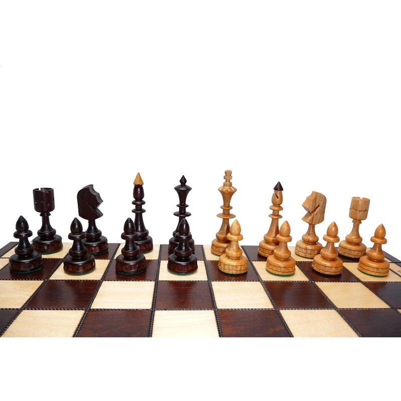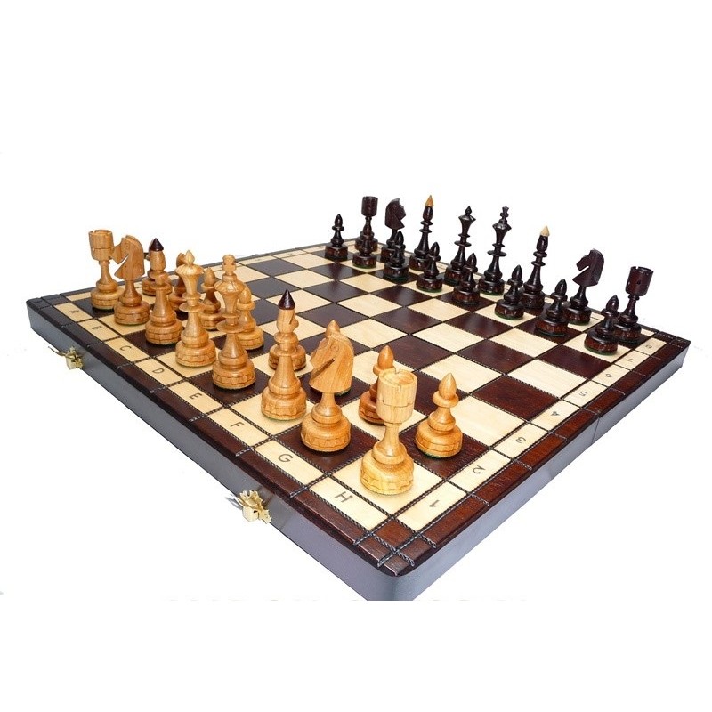 Шахматы "Индийские" - подарочный набор ручной работы польских мастеров, производства Мадон. Фигуры выполнены в индийском стиле - вытянутые и заостренные к верху. Они изготовлены вручную из высококачественного дерева- вишня. Каждая фигура искусно вырезана, тщательно отшлифована и покрыта многослойным лаком. Основание фигур покрыто зеленым войлоком, что способствует лучшему скольжению по доске и не царапает ее. Доска изготовлена из качественной древесины- бук и карельская береза. Разметка на доске нанесена методом выжигания, внутри доски находятся ячейки для каждой из фигур. Для надежного хранения доски в сложенном состоянии, применяются две медные застежки.