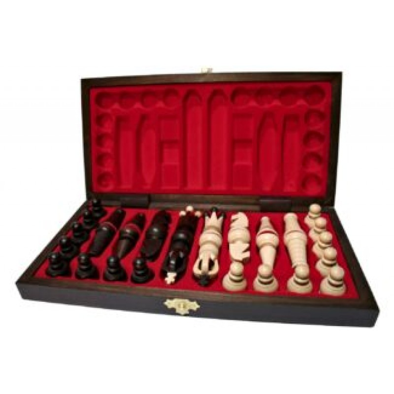 Эксклюзивный шахматный набор "Royal maxi", изготовлен ведущим польским производителем шахмат Madon из высококачественной древесины в классическом черном цвете. Доска изготовлена из дерева- бук и карельская береза , а шахматные фигуры из - граба и бука. Благодаря компактным габаритам, набор можно использовать как дорожный. Доска легко складывается и быстро превращается в удобный контейнер ,с красными бархатными ячейками внутри, для удобного хранения фигур. Шахматные фигуры и доска, изготовленные с элементами выжигания и ручной резьбы, подчеркнут особый вкус своего владельца, и станут замечательным элементом декора вашего дома или позволят наслаждаться любимой игрой в отпуске или в путешествии.