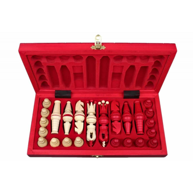 Эксклюзивный шахматный набор "Royal maxi", изготовлен ведущим польским производителем шахмат Madon из высококачественной древесины в потрясающем красном цвете. Доска изготовлена из дерева- бук и карельская береза , а шахматные фигуры из - граба и бука. Благодаря компактным габаритам, набор можно использовать как дорожный. Доска легко складывается и быстро превращается в удобный контейнер ,с красными бархатными ячейками внутри, для удобного хранения фигур.