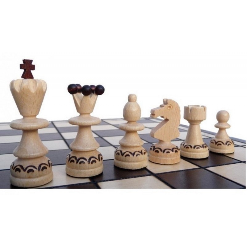 Шахматный набор Жемчужина средняя отличается необычным и лаконичным дизайном и представляет собой качественный деревянный набор, который искусно изготовлен вручную польскими мастерами. Орнамент на фигурах прекрасно сочетается с изящной формой. . Основание шахматных фигур покрыто зеленым войлоком, что способствует их хорошему скольжению при игре и предотвращает царапанье доски. Доска и фигуры тщательно отшлифованы и покрыты многослойным лаком. Разметка на доске нанесена методом выжигания. Для надежного хранения доски в сложенном состоянии, применяется медная застежка.