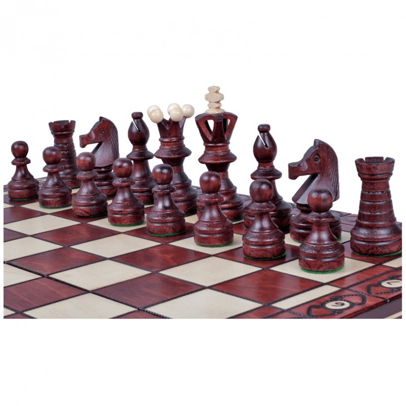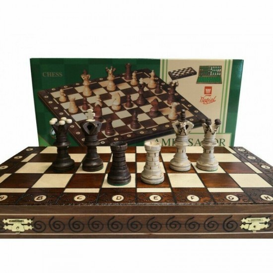 Сувенирные шахматы Амбассадор, от польского производителя Wegiel, изготовлены из высококачественной, тщательно обработанной, экологически чистой древесины (бук, береза). Оригинальные шахматы ручной работы, с элементами резьбы и выжигания, выполнены в классическом стиле.