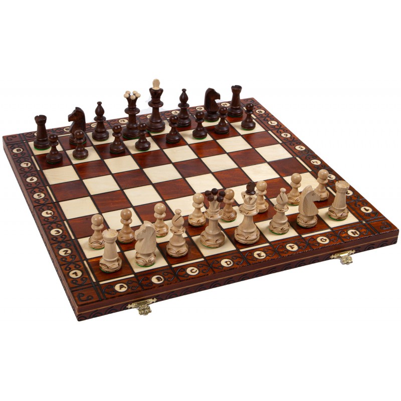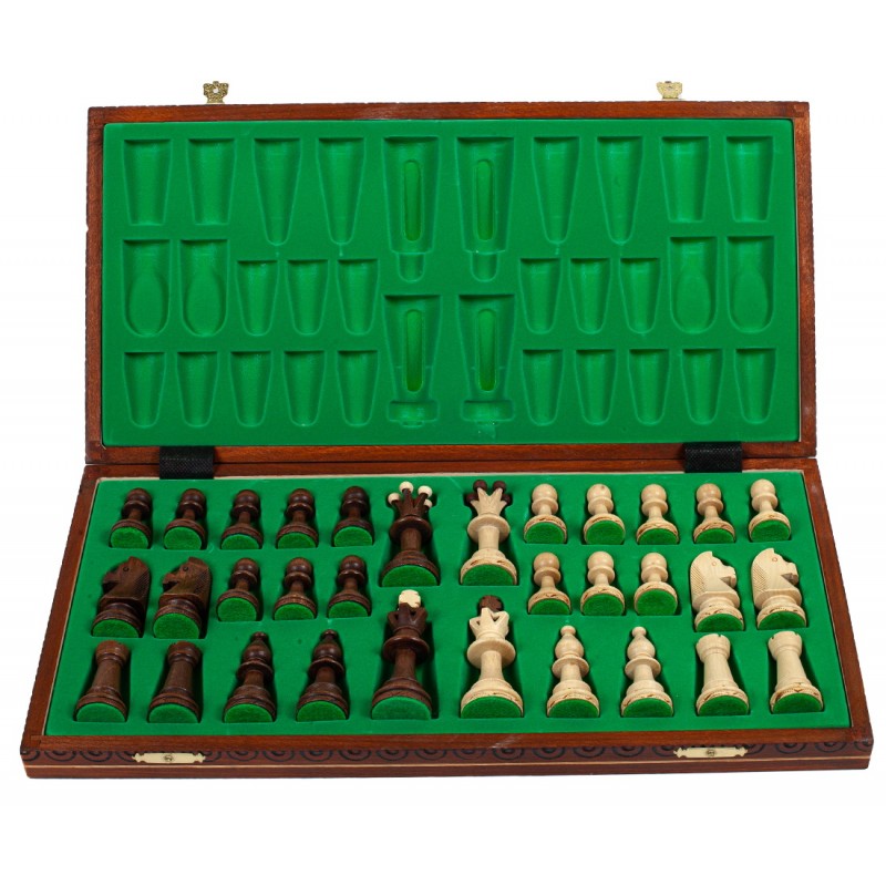 Ощутите элегантность европейских деревянных шахмат ручной работы Consul от Wegiel. Этот отлично выполненный набор идеально подходит для любителей шахмат всех уровней. Цвет слоновой кости фигур и доски придает нотку изысканности любой игре. Шахматная доска изготовлена из натурального дерева бук и березы, и украшена оригинальной резьбой с элементами выжигания. Она легко складывается и превращается в удобный контейнер для хранения фигур. Фигуры в свою очередь изготовлены из натурального дерева граб и дополнительно укомплектованы бархатной подкладкой, исключающей повреждение доски во время игры. Фигуры выполнены в классическом стиле Стаунтона с дополнительным утяжелителем