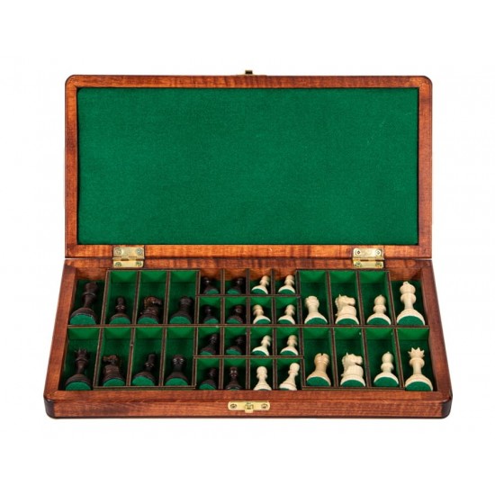 Фигуры выполнены из качественного дерева с детализированной обработкой, подчеркивающей классическую эстетику шахмат. Их магнитное крепление на доске обеспечивает стабильность во время игры и позволяет наслаждаться процессом без лишних забот. Благодаря оптимальному сочетанию легкости и прочности, фигуры удобно держать в руках, а их вес обеспечивает приятный баланс при ходах.
