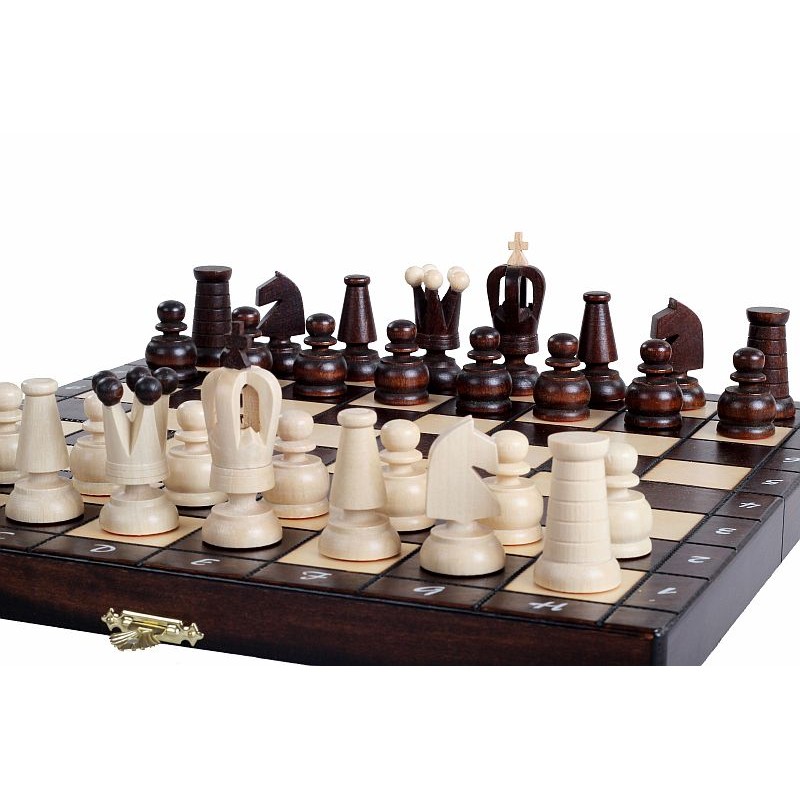 Эксклюзивный шахматный набор "Royal maxi", изготовлен ведущим польским производителем шахмат Madon из высококачественной древесины. Доска изготовлена из дерева- бук и карельская береза , а шахматные фигуры из - граба и бука. Благодаря компактным габаритам, набор можно использовать как дорожный. Доска легко складывается и быстро превращается в удобный контейнер ,с красными бархатными ячейками внутри, для удобного хранения фигур. Шахматные фигуры и доска, изготовленные с элементами выжигания и ручной резьбы, подчеркнут особый вкус своего владельца, и станут замечательным элементом декора вашего дома или позволят наслаждаться любимой игрой в отпуске или в путешествии.