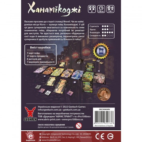 Настольная игра Ханамикоджи (Hanamikoji) Geekach Games